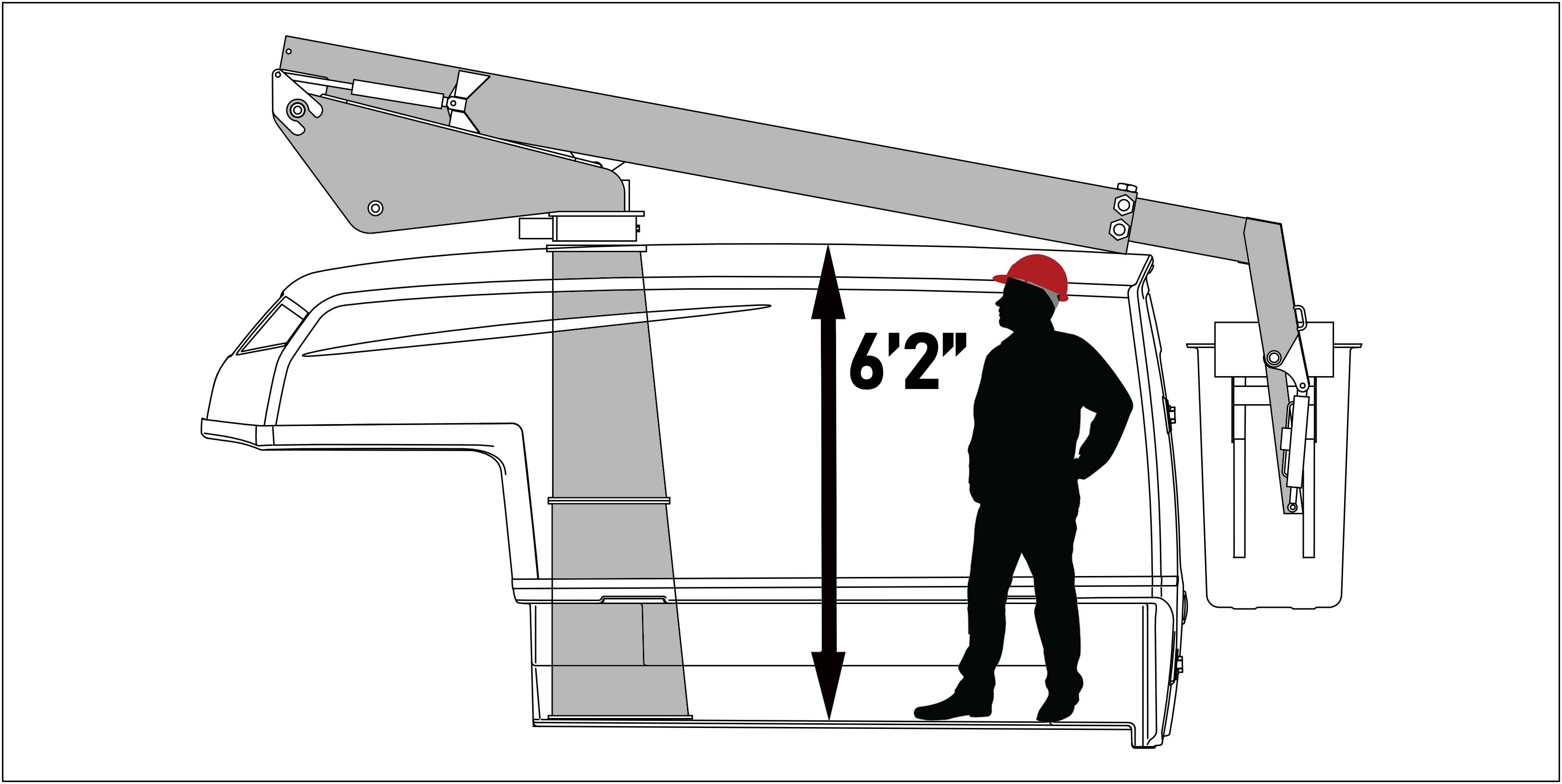 • The design was built around functionality.   An mpressive interior height of 6 feet 2 inches.  Operators can get in and out easily with plenty of room.  A well organized interior work area with dual work benches and several interior options.